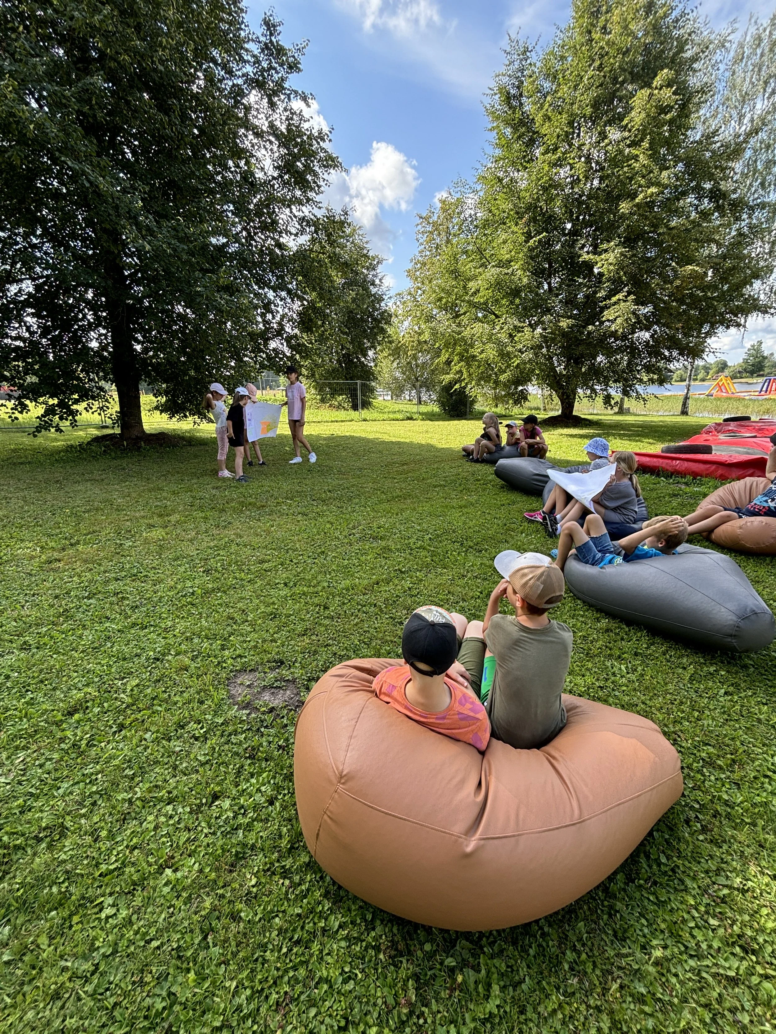 IEKĻAUTS: Viena ēdienreize (pusdienas), visas programmā paredzētās aktivitātes, viss nepieciešamais inventārs un rekvizīti, peldēšanas drošības vestes, instruktoru uzraudzība, piepūšamās ūdens atrakcijas (peldēšana - pēc laikapstākļiem katru dienu, taču ūdens atrakciju parks - var nebūt katru dienu). Nometnes tiek rīkotas saskaņā ar LR likumā noteikto!